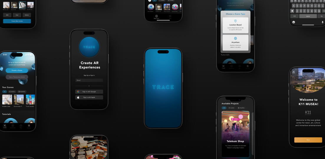 Download the Trace Creator App to start creating AR content. Log in via Google, Apple or Email - your content syncs across devices.